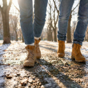 Respiriamo profondamente, lasciando che l’aria fresca dell’inverno entri nei polmoni, e sincronizziamo il respiro con i nostri movimenti, magari inspirando per tre passi ed espirando per altri tre.